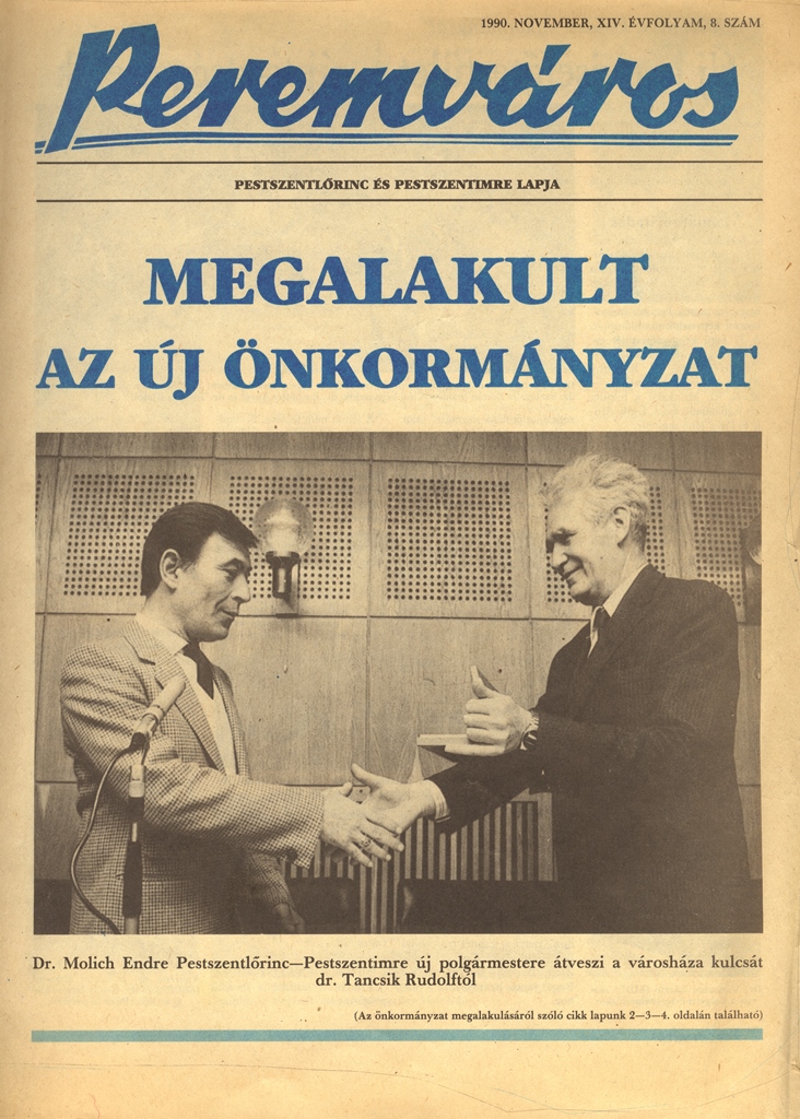 Településünk életében is kiemelkedő jelentőségű volt az 1990. évi önkormányzati választás, hiszen ekkor kerülhetett itt is a lakosok által választott vezetők kezébe a kerület irányítása. A változás békésen és gördülékenyen ment végbe, köszönhetően többek között dr. Tancsik Rudolfnak, a tanács akkori elnökének.