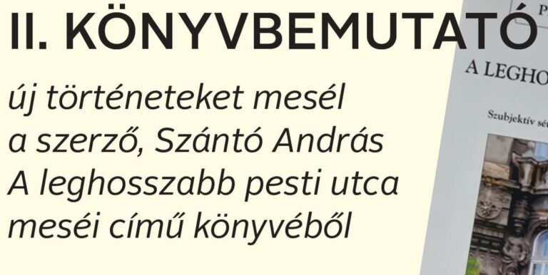 Szántó András: A LEGHOSSZABB PESTI UTCA MESÉI – újabb történetek! 2024. május 14. kedd 17.00 MÚZEUMSAROK Szántó András márciusban már tartott egy nagy sikerű bemutatót a Pesti Alakok sorozat 2022-ben