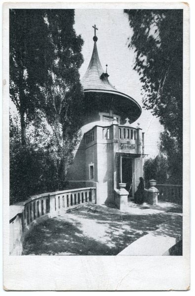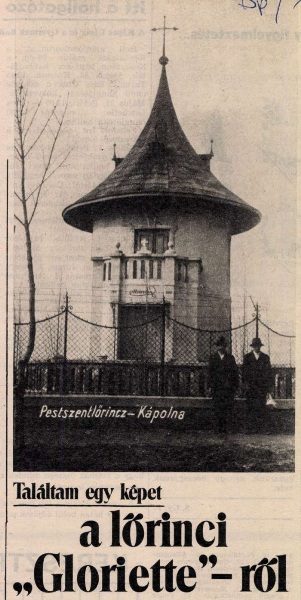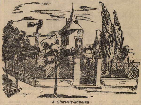 „Ha az ember a Mária Terézia-laktanyától induló 42-es villamos végállomásán, Szentlőrincen leszáll s végigmegy a Petőfi-utcán, egy kis domb tetején, szőlőktől és dús lombú fáktól körülvéve találja a Gloriette-kápolnát. Gondozott kert közepén áll az emeletes, körlépcsős és erkélyes, tornyos épület, amely mögött telek a tulajdonosának csinos villája bukkan elénk a fák ágai között. Szép, vaskerítés szegélyezi és udvarias kérésre szívesen beengednek mindenkit, annál is inkább, mert a kápolnában vasárnaponként van mise is.”[51] Több mint 110 évvel Ferenc császár látogatása után, az 1930-as években a Gloriette környékének romantikájához tartozott az is, hogy „most udvarosszemű nagyszarvú magyar ökrök ballagnak az eke előtt”.[52]