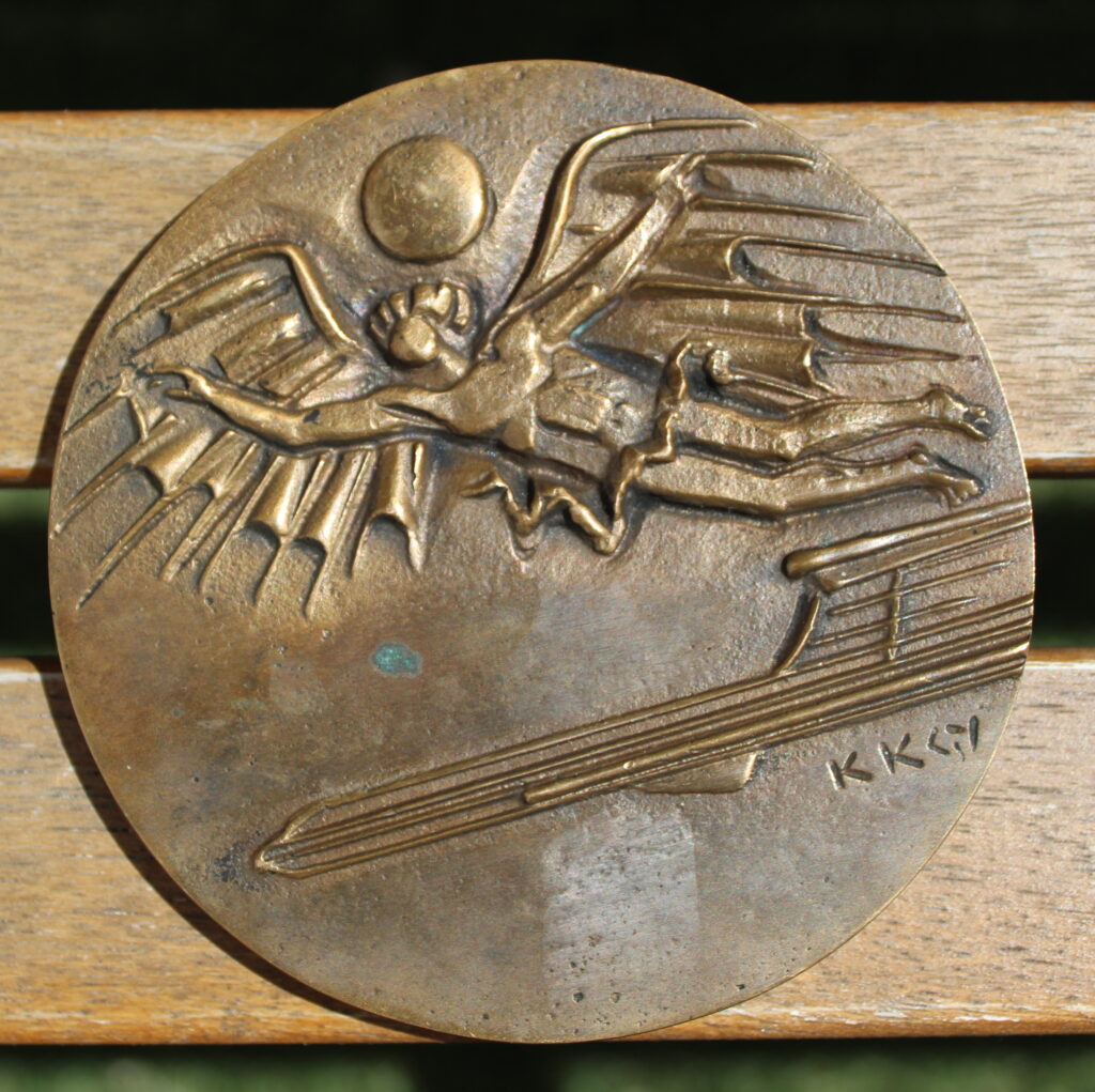 A magyar légivállalat sok éven át kifejtett tevékenysége folyamán a legkülönfélébb alkalmakra adott plakettet és egyéb kitüntetést, emléket dolgozói számára. Ezt prezentálja ez a nyugdíjazás alkalmából elkészített emlék plakett, melyet