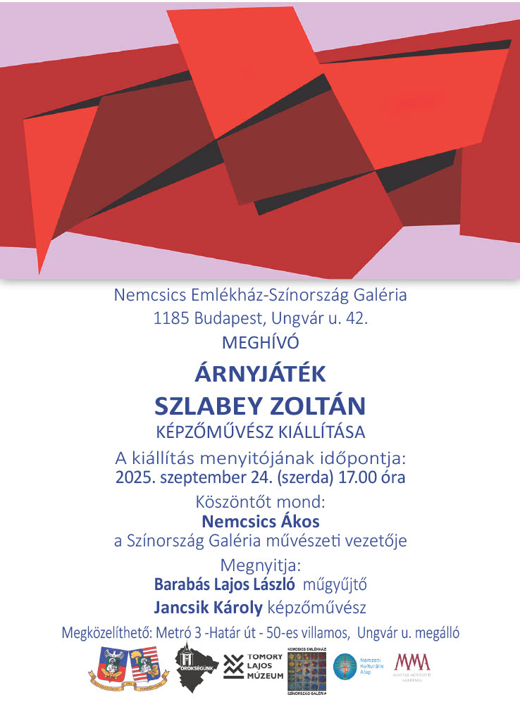 2025. szeptember 24-én 17 órakor Szlabey Zoltán válogatott műveiből ÁRNYJÁTÉK címmel nyílik kiállítás a Nemcsics Emlékházban, melyet Jancsik Károly képzőművész és Barabás Lajos László műgyűjtő fog megnyitni. A kiállítás egy hónapig lesz látogatható.